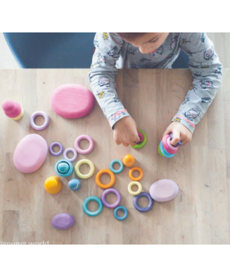 zu kombinieren mit den Kleinen und Großen Kugeln oder auch Regenbogenfreunden, daraus entstehen kleine Wackeltürme und können nach Farben und Formen sortiert werden