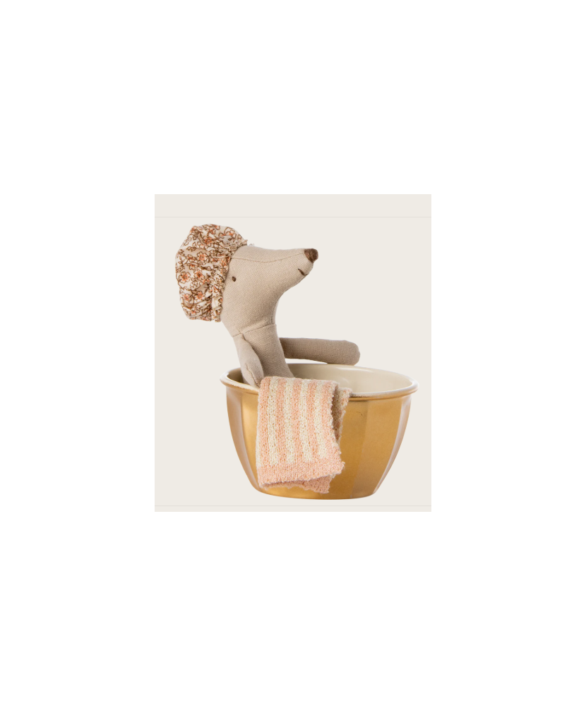 Spielset Große Schwester Maus mit Metallbadewanne, eine Duschhaube und ein Handtuch